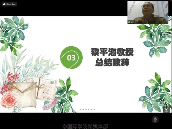 Then, Dr. Sal made comments on the competition. He said that although the debating topic was difficult, both sides did very well. He thought it was a very exciting contest. He also pointed out that voice is extremely important for online debate competitions, and you should make sure that if your emotion can impress the audience. Finally, he recognized the excellent performance of the debaters, and hoped students would make continuous efforts.