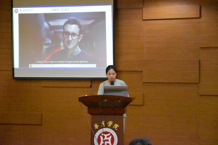 Subsequently, the 9 finalists took turns to appear, showcasing their English speaking skills and understanding of new quality productivity through live dubbing of an English documentary about a foreign friend visiting modern enterprises and research institutes in China.