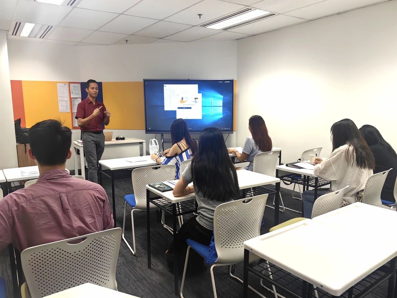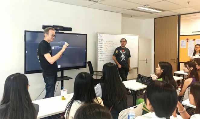 This event was jointly organized by Guangzhou Huashang College and Edvantage Institute Singapore (EIS) . During the study trip, the delegation first visited EIS, where they gained a detailed understanding of Singapore's education system, cultural characteristics, cultural highlights, and unique customs. Subsequently, Mr. Hafiz and Ms. Nicolette, experienced teachers from EIS, tested the students' English proficiency in grammar, vocabulary, reading, and writing. Based on the test results, the students received personalized guidance to precisely identify their strengths and areas for improvement in English learning, providing clear directions for enhancing their language skills.