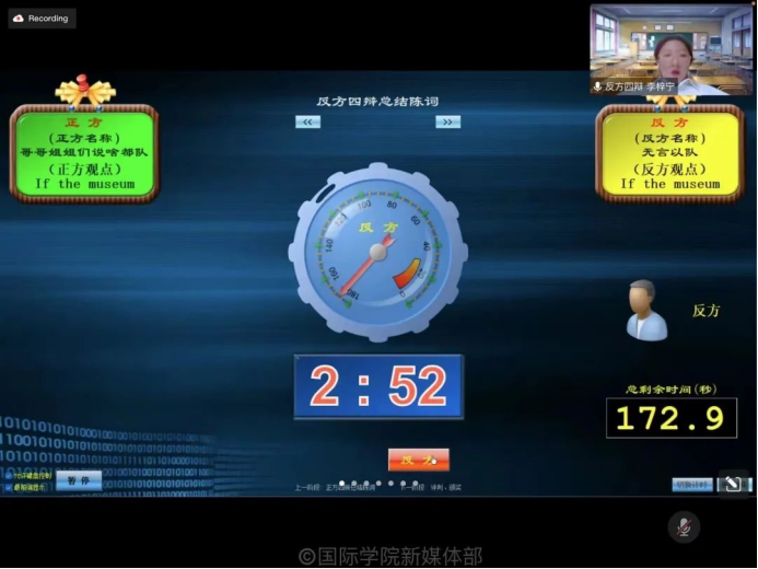 According to the judges scores, the pro side (debaters Chen Yanxi, Lin Zihan, Gong Yuxin and Yang Minzhan were included) won the first prize and the con side won (debaters Li Meijing, Yan Jiarun, He Meixuan and Li Zining were included) won the second prize in the final. And Yan Jiarun and Lin Zihan were presented with the “the Best Debaters” award.