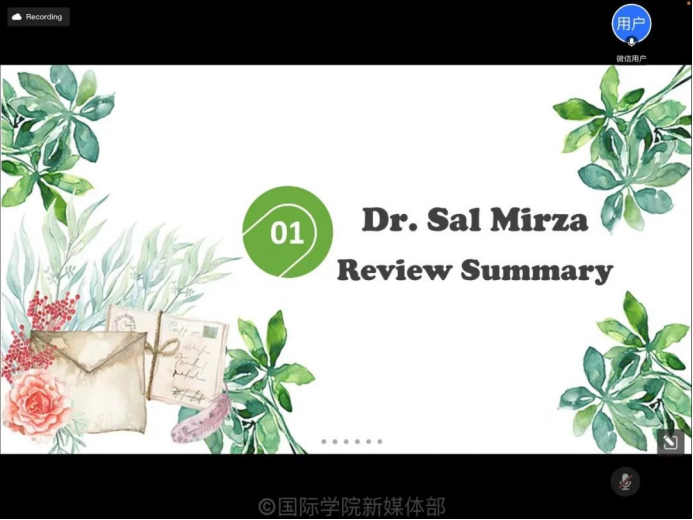 Then, Dr. Sal made comments on the competition. He said that although the debating topic was difficult, both sides did very well. He thought it was a very exciting contest. He also pointed out that voice is extremely important for online debate competitions, and you should make sure that if your emotion can impress the audience. Finally, he recognized the excellent performance of the debaters, and hoped students would make continuous efforts.
