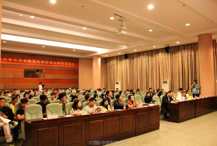 Professor Zhang Zhen, Vice Chair of Department of Economics and Finance, Professor Yang Runxiu, Vice Chair of Department of Foreign Language, Mr. Wang Wenzhong, Director of International Exchange and Cooperation Office of Huashang College, and foreign faculty Professor Sal Mirza and Mr. Christian Saunders were cordially invited as judges. Additional, several other faculty including James Parkinson, Sun Qian, Zhou Jie, Huang Junjie, and Cai Qingfu were invited as guests.