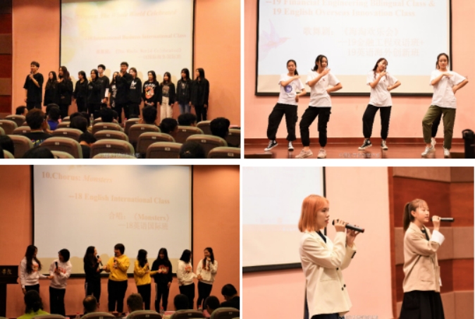 As the evening drew to an end, everyone was eager for the award ceremony. 18 English International Class won the first prize for their song Monsters. 18 International Business International Class and 18 International Economic and Trade International Class won the second prize. The third prize was awarded to 19 Accounting International Class, the performance team of Art Troupe and the dancing team of Art Troupe of International School. The dancing team and singing team of Art Troupe of Foreign Language Department received the friendship award for their outstanding performances. The other teams were awarded the excellent award.