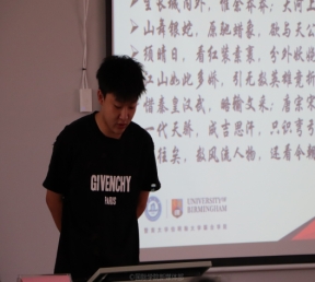 When talking about the famous works of Mao Zedong, the founder of the People’s Republic of China, Prof. Li displayed some poems of President Mao created in Yan’an and invited students to read them out loud on stage. Students recited the poems fluently and emotionally, which won rounds of applause from audience. During the Q&A part, students enthusiastically put forward their questions and Professor Li responded patiently.