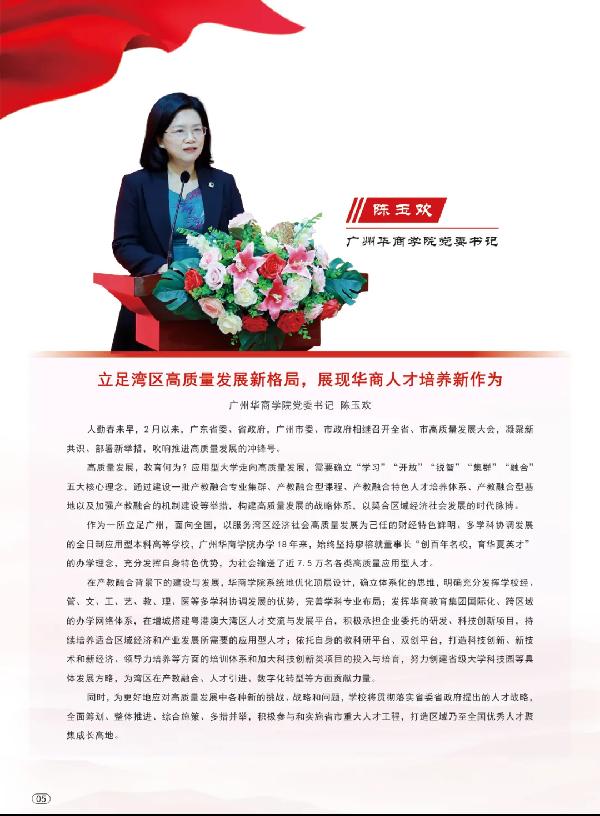 广州华商学院,创办于2005年,2006年经教育部批准成为独立学院,2011年获批学士学位授予单位。2020年12月,经教育部同意转设并更名为广州华商学院。学校以本科教育为主体,积极发展专业学位研究生教育。学校是教育部“国家级”一流本科专业建设点入选高校,广东省硕士学位授予立项建设高校。学校由世界著名化学家、中国科学院院士、香港浸会大学前校长陈新滋教授任校长,诺贝尔化学奖得主让—马里·莱恩(Jean-Marie Lehn)教授任荣誉校长。学校是粤港澳大湾区较大的一所财经特色鲜明的民办商科大学,也是一所多学科融合协调发展的全日制教学应用型普通本科院校。