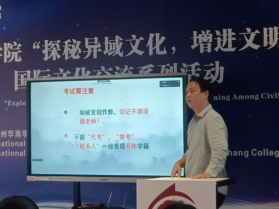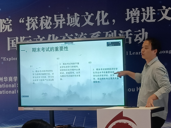 在解读学校考风考纪要求环节,杨李军老师根据学校学生手册相关规定,着重强调了诚信考试的重要性,考试违纪、考试作弊的认定以及产生的后果。