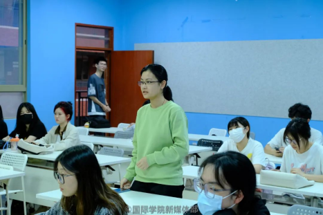 而第二个问题:电影《离开雷锋的日子》是以什么样的视角讲述的?21本英语(国际班)王倩同学回答道:“《离开雷锋的日子》从片名中就能够看出该电影编导并不是以讲述雷锋的生平事迹为目的,而是以第三人称视角,即雷锋的战友乔安山的视角进行演绎的。影片开头就交代了英雄雷锋的牺牲,但故事主要描绘的是乔安山见义勇为、无私奉献的行为,这不仅展现了雷锋精神的璀璨光辉和时代光芒对他人的正面影响,而且侧面体现了雷锋精神在当代生活中的不断传承,这也是该影片最巧妙的一点,即通过展现雷锋身边人的视角来刻画雷锋的人物形象和精神。”