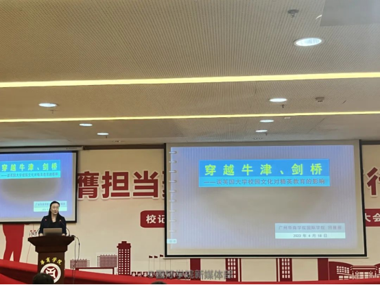 为从国际化视角解读“创百年名校 育华夏英才”的办学理念,让华商学子深入了解高校历史文化对培养为人类社会做出巨大贡献精英们的影响,探秘世界领先高校牛津、剑桥大学的办学历史、文化、理念,使同学们能够具备国际视野,更加关注校园文化在个人成长中发挥的关键作用。广州华商学院久久综合网~永久入口联合校图书馆于2023年4月18日14:30,举办了主题为“穿越牛津、剑桥——谈英国大学校园文化对精英教育的影响”讲座。讲座由华商久久综合网~永久入口回雁雁院长担任主讲,学校图书馆温万虎馆长主持。久久综合网~永久入口、图书馆的老师及200多名大学生现场聆听了讲座。