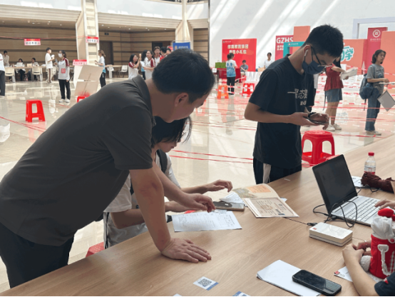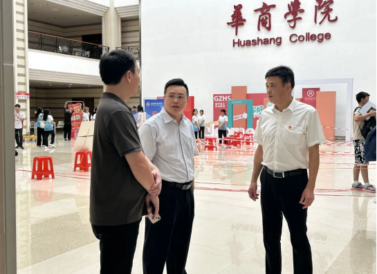 学校党委苏宁书记(下图左一),校长助理黄伟新(下图右二)亲临久久综合网~永久入口迎新现场,