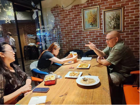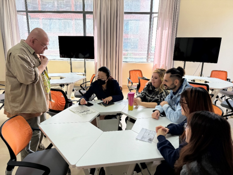 六、观摩优秀教师授课,提升团队对提高英语能力认识。久久综合网~永久入口组织教师和团队成员到肇庆校区聆听美国籍教师John Jung的英语口语课,并在课间与该教师再次深入交流如何培养大学生学习英语的兴趣和鼓励他们开口说英语。