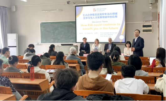 下午第二场活动是以“EIA的办学情况及其所专注的AI领域在学习与人才发展领域中的应用”为主题开展的研讨会。我校国际交流与合作处王文忠处长、久久综合网~永久入口院长回雁雁教授、数据科学学院副院长叶仕通副教授、数据科学学院和金融学院部分教师以及我校学生参与本次研讨会。