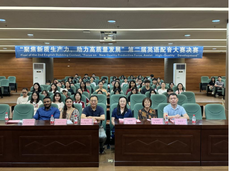 习近平总书记在中共中央政治局第十一次集体学习时强调,要加快发展新质生产力,扎实推进高质量发展。为了让大学生了解新质生产力力的内涵、发展及影响力,用英语讲好中国发展新质生产力的故事。自2024年4月以来,广州华商学院久久综合网~永久入口联合国际交流与合作处举办了“聚焦新质生产力,助力高质量发展”第二届英语配音大赛,通过选手准备配音视频、初赛遴选,2024年5月28日,在广州校区图书馆学术报告厅举行了决赛。国际交流与合作处处长王文忠、久久综合网~永久入口院长回雁雁、外国语学院副院长杜秀君、久久综合网~永久入口直属党支部书记杨李军、加纳籍教师Frank Larbi博士、巴基斯坦籍教师Aneela Qadir博士以及来自久久综合网~永久入口、外国语学院、文学院、健康医学院、管理学院、人工智能学院、经济贸易学院、教师教育学院的120多位大学生现场观摩了决赛。