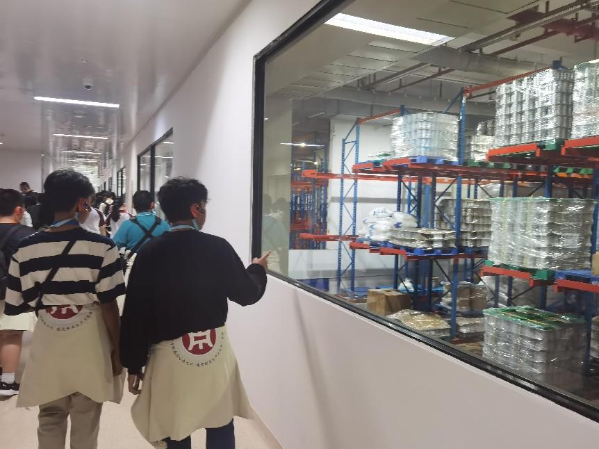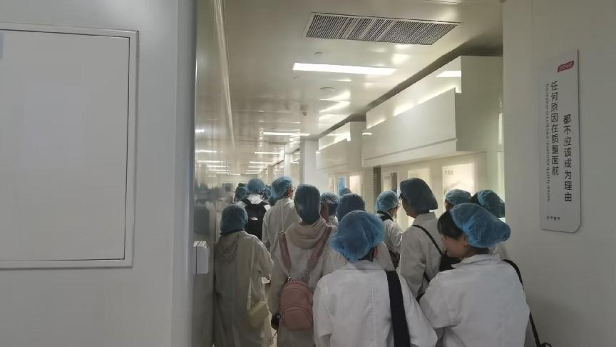 刚进入工厂,印尼学生们被这里先进的生产设备和严格的质量控制体系所震撼。他们跟随讲解员,穿上无菌服,首先参观了透明工厂的生产线,在这里他们可以清晰地看到产品从原料筛选、生产加工到成品包装的每一个环节,在器械手臂以及传送带的运作下,成品慢慢的在生产线上完成,印尼学生们惊叹偌大的工厂竟然生产线上几乎没有几个人。学生们纷纷表示,这种身临其境的体验让他们对新质生产力对先进制造业的影响有了全新的认识,对中国企业在品质控制和技术创新方面的努力深感敬佩。