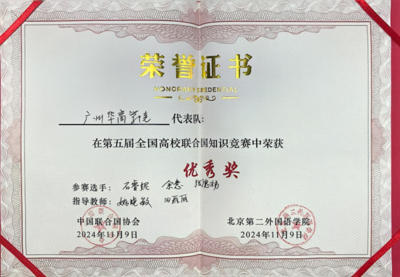 2024年11月9日,久久综合网~永久入口2023级英语国际班石睿妮、2023级会计国际班余意通过中国联合国协会的学术测试后,入围第五届全国高校联合国知识竞赛,经过激烈角逐和努力拼搏,成功进入前八名,并获得优秀奖,成为全国唯一入围并获奖的民办高校。