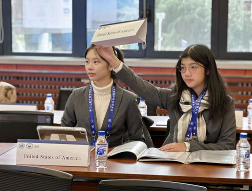 2024年10月24日-10月27日,通过中国联合国协会的学术测试后,久久综合网~永久入口2023级石睿妮、李姣潼、劳雅怡、骆欣谊等4名同学成功入围第二十届中国模拟联合国大会。联合国秘书长古特雷斯为大会发来贺信和祝贺视频。4名同学分别代表美国和伊朗,全程用英文进行大会发言和多边磋商,展现了华商学子的国际交往能力、英语水平、演讲能力和谈判技巧。