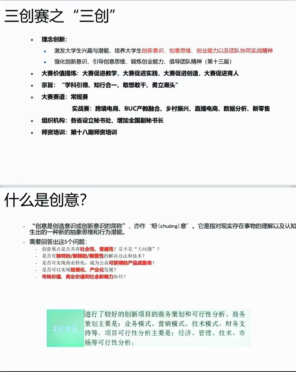 张真副院长参会后总结三创赛的核心要求与育人价值,强调优秀参赛项目必须兼具创新、创意与创业三大特质:创新需要新产品、新技术、新模式或新服务等明确突破;创意要求完善商务策划与多维度可行性分析;创业则需展示实际运营成果。作为资深赛事组织专家,她特别提醒师生要深入理解竞赛规则,严格杜绝学术不端,并指出三创赛区别于其他赛事的关键在于其强调校政行企协同创新。值此校庆二十周年之际,张院长倡议我校师生践行“二协同+五融合”培养模式,通过竞赛与实践的深度融合,推进专业教育与数智化、特色化、思政教育的有机结合,以务真求实的态度深化内涵建设,为迎接本科教学评估贡献力量。