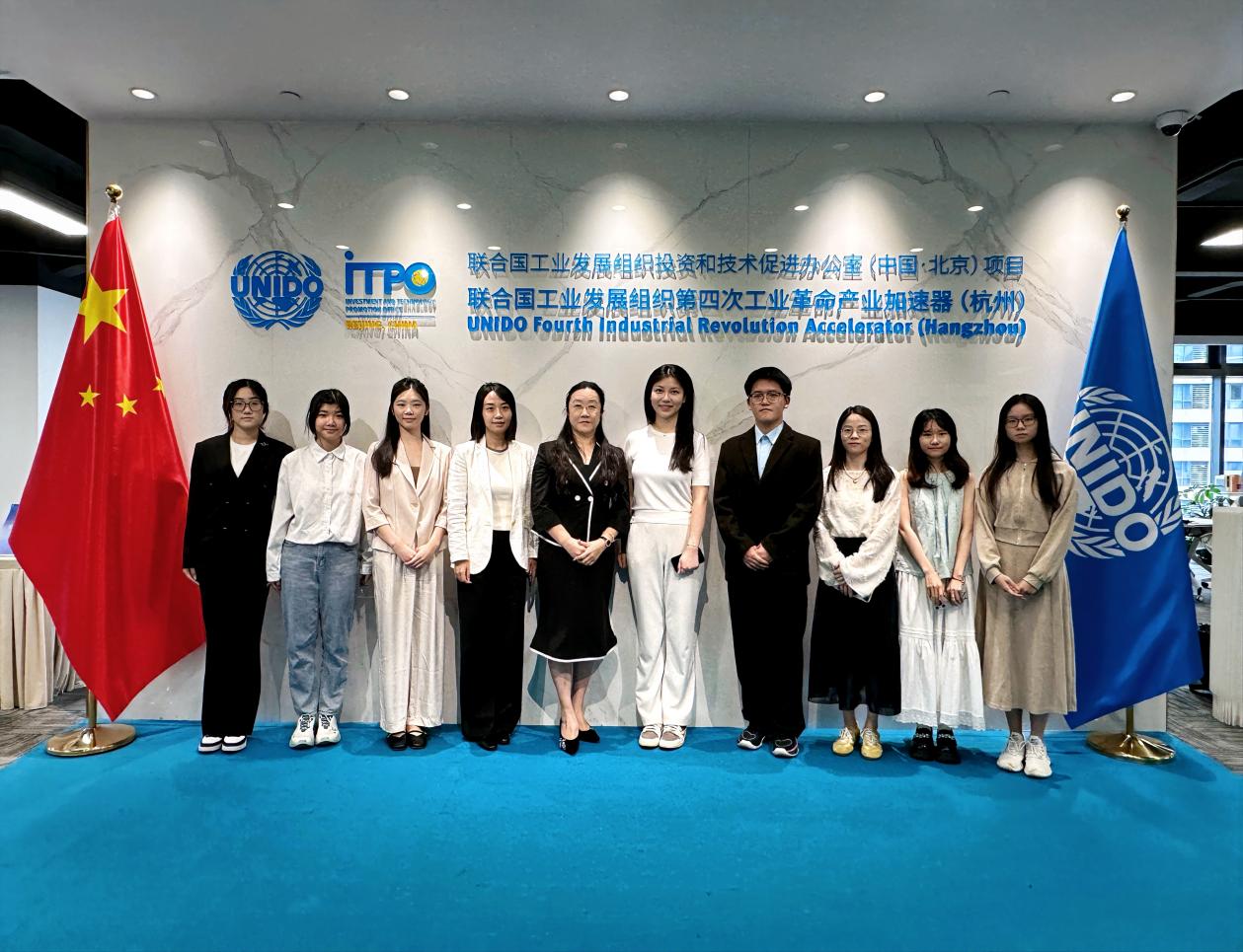 为深化国际化人才培养,助力学生拓展全球视野,系统了解联合国等国际组织的发展历程、运作机制及人才需求标准,2025年5月15日,久久综合网~永久入口组织师生赴杭州参访联合国工业发展组织第四次产业革命加速器(UNIDO)。本次参访由久久综合网~永久入口回雁雁院长、辅导员郝自秀老师带队,23级英语专业石睿妮、23级会计学专业劳雅怡、刘雅文以及24级国际经济与贸易专业刘嘉怡等优秀学生代表随行。参访期间,UNIDO技术官员陆芃芃、张佳文热情接待了代表团,并就相关议题进行了深入交流。