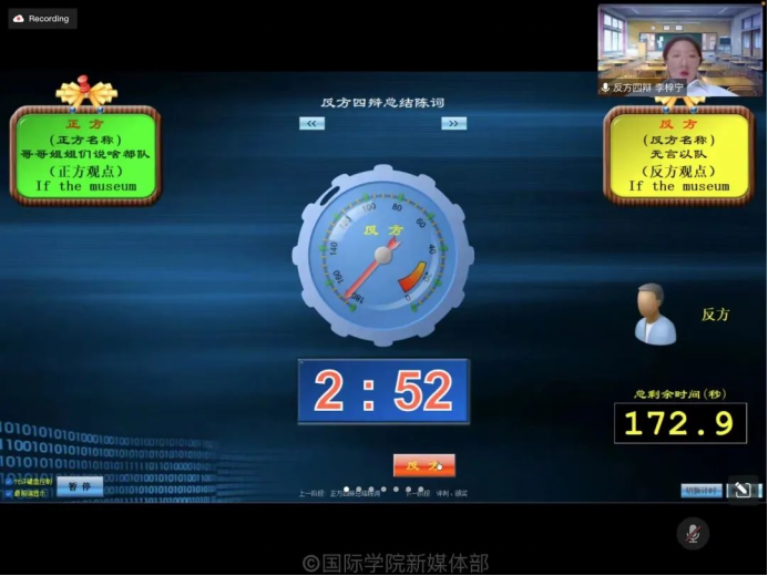 为丰富学生的课余生活,展示学生风采,增强其逻辑思维能力,提高其英语应用水平,华商久久综合网~永久入口第三届“哈德杯”英文辩论比赛初赛于2022年12月5日18:30在线上顺利举行。华商久久综合网~永久入口辅导员杨李军老师及办公室其他老师担任此次初赛的评委嘉宾。决赛于2022年12月12日18:30在线上举办,英国哈德斯菲尔德大学华南区招生代表何枫桢女士,华商久久综合网~永久入口副院长黎平海教授,华商久久综合网~永久入口外籍教师Dr.Sal Mirza,华商久久综合网~永久入口辅导员杨李军老师,华商久久综合网~永久入口办公室莫智锵老师、郝自秀老师、李咏荷老师,学生代表杨梦彤与于正扬出席了决赛并担任评委嘉宾。
